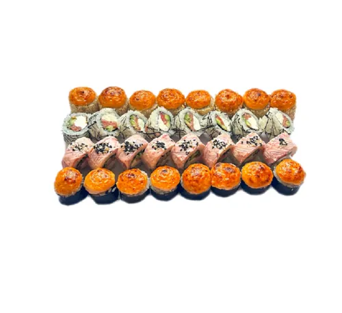 Состав: натуральный сыр моцарелла, соус сакура, перец болгарский, лук репка, морковь, фасоль стручковая, зелень.